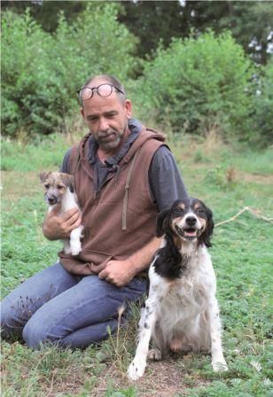 Landeshundeobmann Gunter Schledorn mit seinen Hunden, einem Epagneul-Breton und einem Parson Russel Terrier.