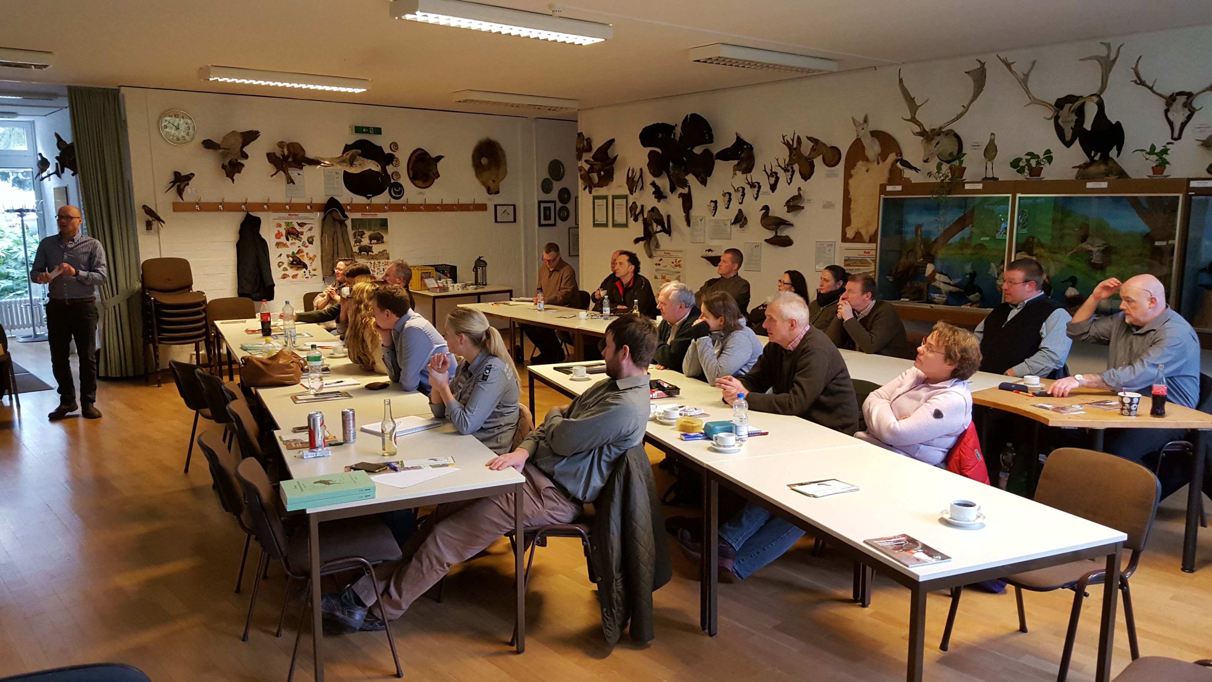 Am 12.02.2017 fand im "Haus des Waldes" der Kreisjägerschaft Essen ein Richteranwärterseminar statt. Die Referenten Kappert und Röttgen konnten 23 interessierte, überwiegend jüngere Teilnehmer begrüssen. Die Geschichte und Struktur des JGHV, Jagdhunde und Jagdhunderassen, Prüfungswesen und das Thema "vom Anwärter zum qualifizierten Verbandsrichter" wurden anhand einer PowerPoint Präsentation geschult.