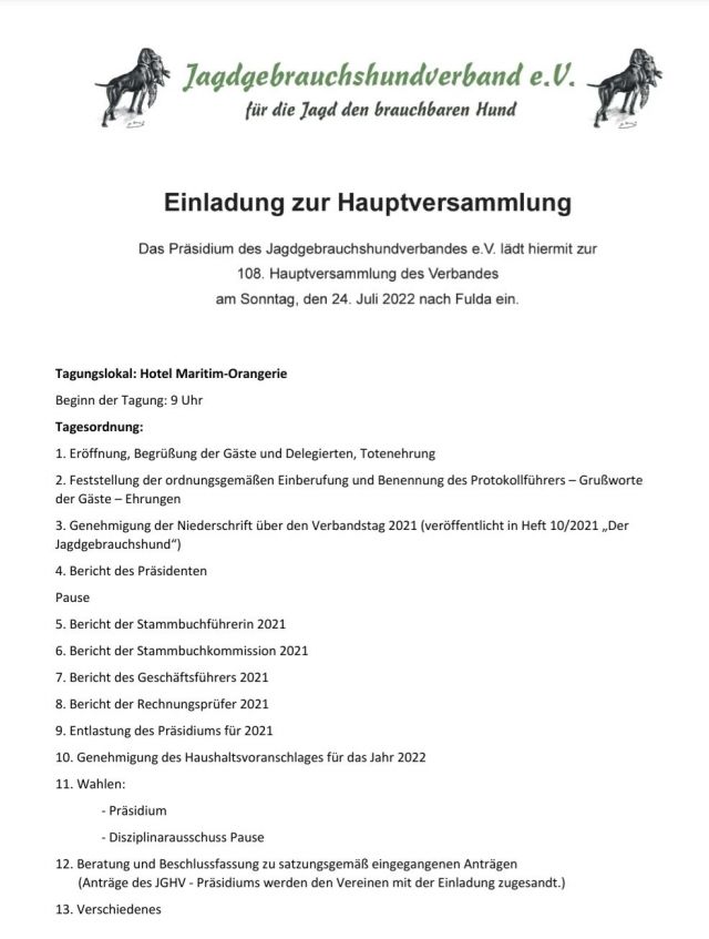Pressemitteilung im Juli 2022 zum 108. Verbandstag des JGHV e.V.